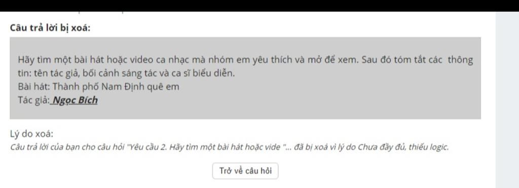 Câu trả lời bị xoá: