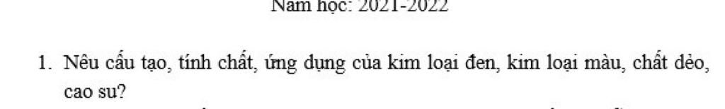 Nêu cấu tạo tính chất ứng dụng của kim loại đen , kim loại màu và chất dẻo cao su