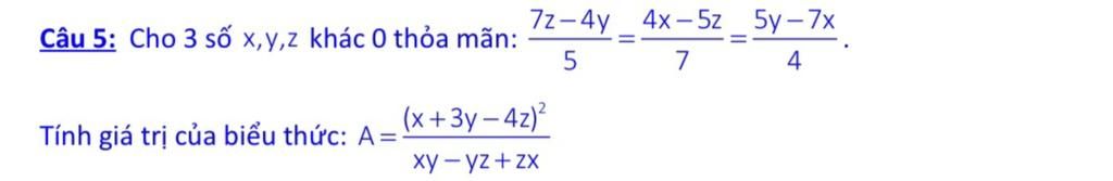 Từ `(7z - 4y)/5 = (4x - 5z)/7 = (5y - 7x)/4`