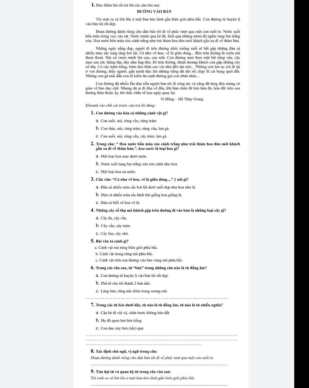 C: Con suối , núi , rừng vầu , cây trám , lợn gà.