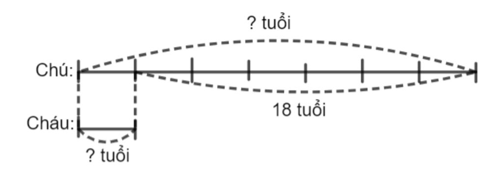 Do 7 ngày là 1 tuần, tuổi chú có bao nhiêu ngày thì tuổi cháu có bấy nhiêu tuần, nên coi tuổi chú là 7 phần bằng nhau thì tuổi cháu là 1 phần.