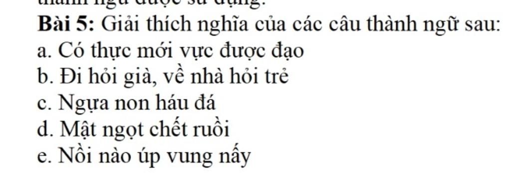 Bài 5: Giải thích nghĩa của các câu thành ngữ sau: