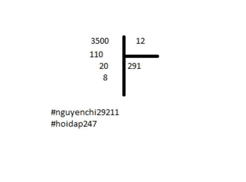`3500 : 12 = 291` ( dư `8` )
