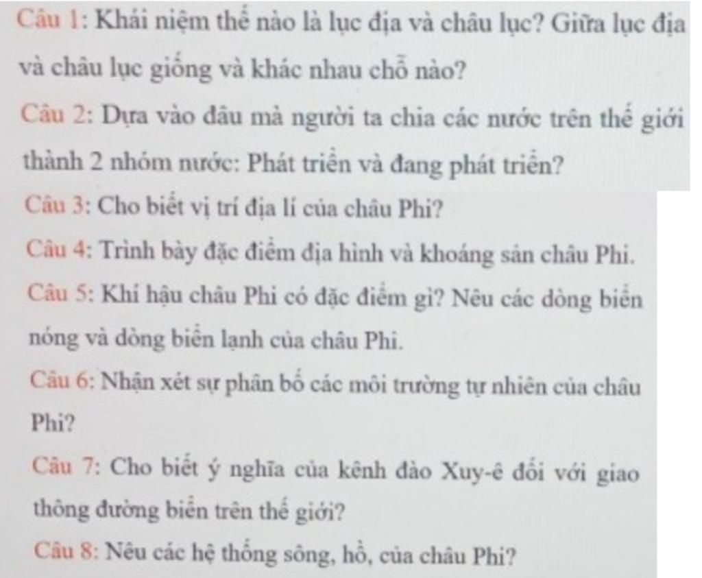 Câu 1: Khái niệm thế nào là lục địa và châu lục? Giữa lục địa và châu lục giống và khác nhau chỗ nào?