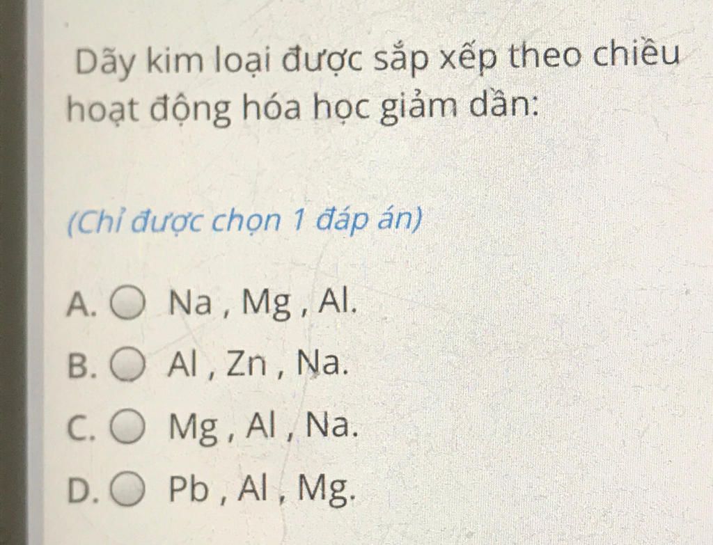 -Dãy hoạt động hóa học theo chiều giảm dần là: