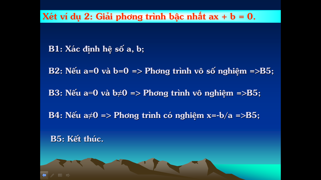 * Thuật toán giải phương trình bậc nhất ax + b = 0