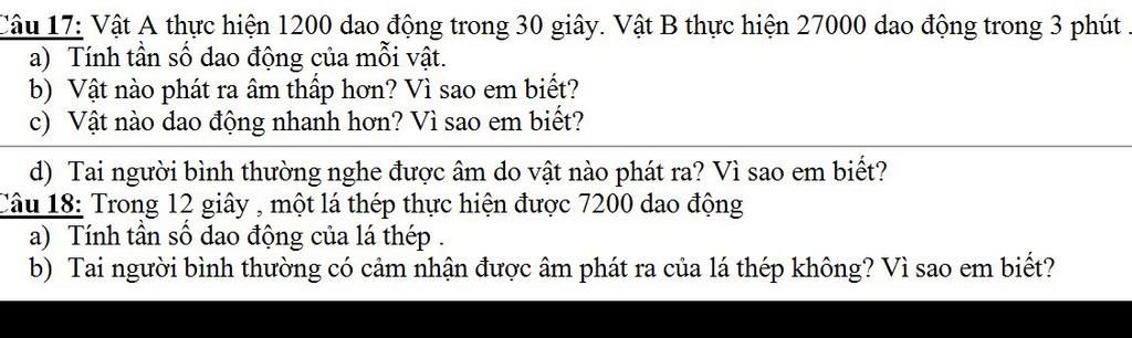 `d)` Tai người bình thường nghe được âm do cả vật A và vật B phát ra vì thông thường tai người có thể nghe được âm có tần số trong khoảng từ 20Hz đến 20000Hz