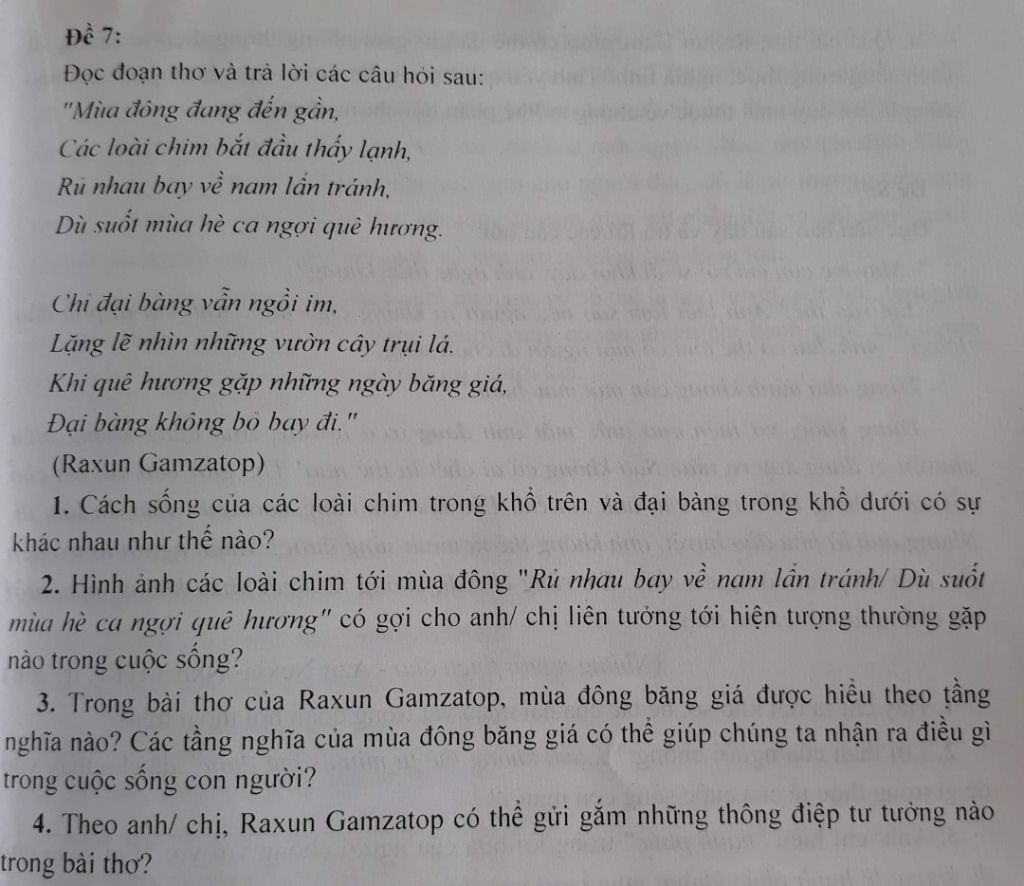 3, Trong bài thơ, mùa đông băng giá được hiểu là những điều kiện khó khăn, những thách thức chung trong một cộng đồng, dân tộc hoặc một đất nước. Hình ảnh mùa đông làm em thấy được cuộc sống chung của bất cứ quốc gia, dân tộc nào đều sẽ phải có những bất trắc và thử thách gập ghềnh nhất định để mà trải qua.