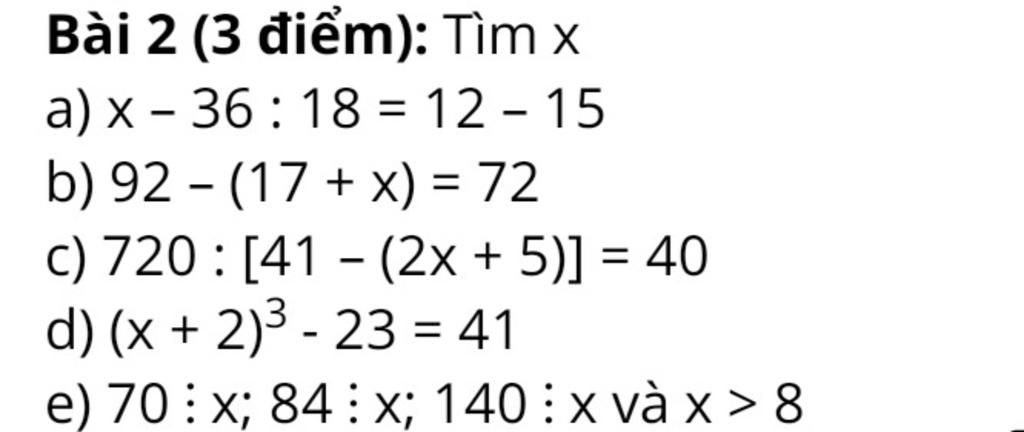 e) 70 ⋮ x; 84 ⋮ x; 140 ⋮ x và x > 8