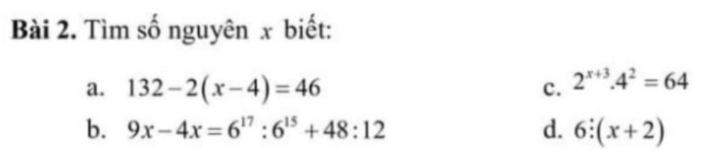 `d,` ` 6` chia hết `(x+2)` .Mà `x` ∈ `Z`