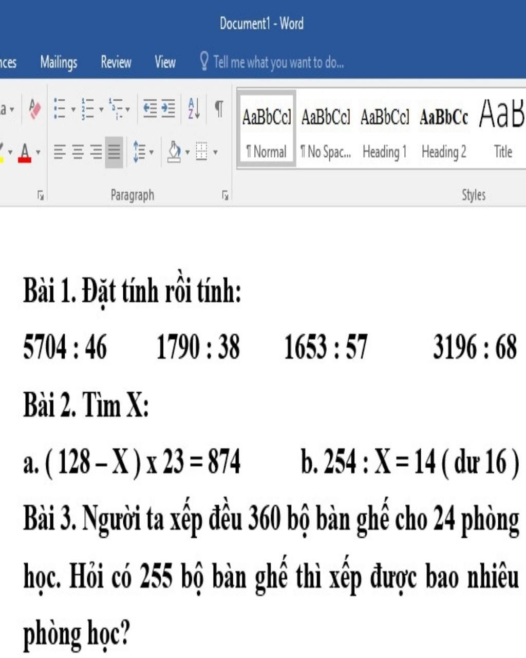 a, (128 - x ) x 23 = 874 b, 254 : x = 14 (dư 16)