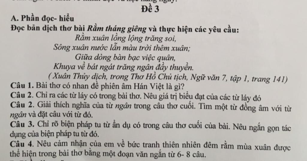 Câu 1: Rằm tháng giêng ( Nguyên tiêu )