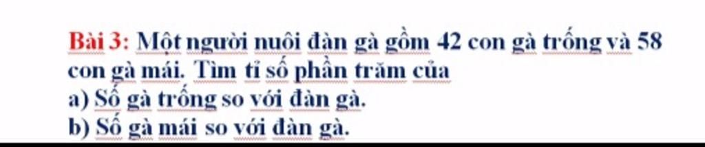 $\text{b) Tỉ số phần trăm của số gà mái so với đàn gà là :}$
