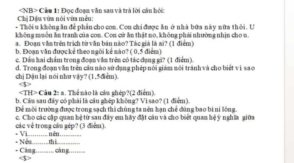 b) đợn văn được kể theo ngôi thứ nhất (chị dậu kể)