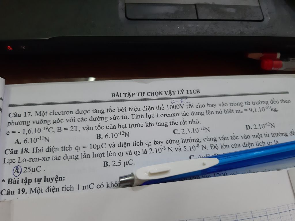 \[f = \left| q \right|.B.v = 1,{6.10^{ - 19}}.2.18,{8.10^6} = {6.10^{ - 12}}N\]