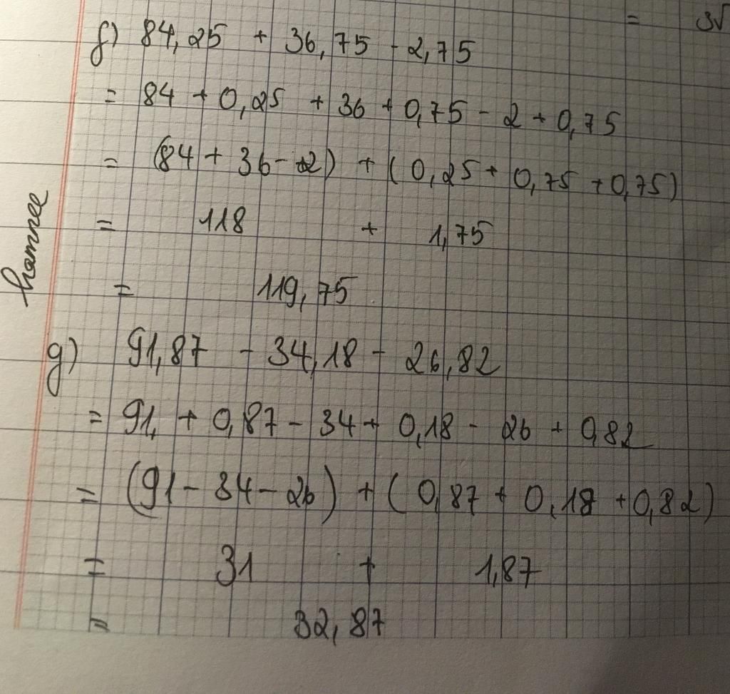 f, 84,25 + 36,75 - 2,75