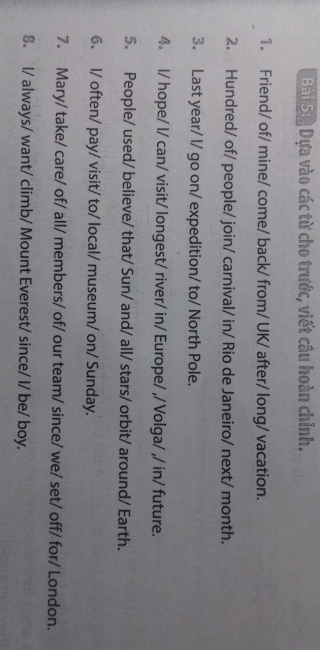 7. Mary has taken care of all the members of our team since we set off for London. -> HTHT since QKĐ