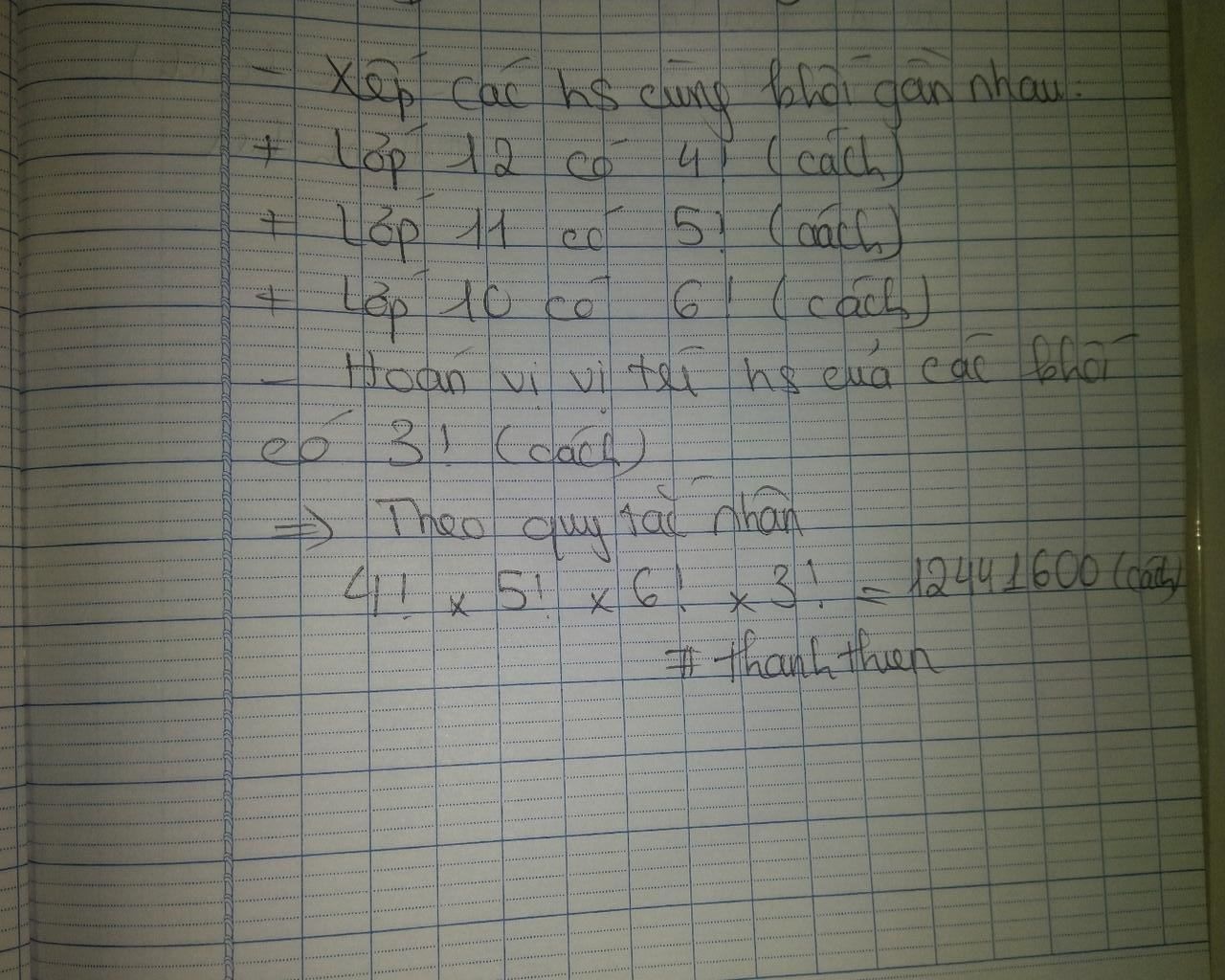 Bước 4: Xếp các bạn trong khối 10 có 6! cách.