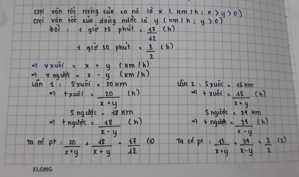 Gọi vận tốc khi xuôi dòng và vận tốc ngược dòng là: a và b (km/h) (a,b>0)