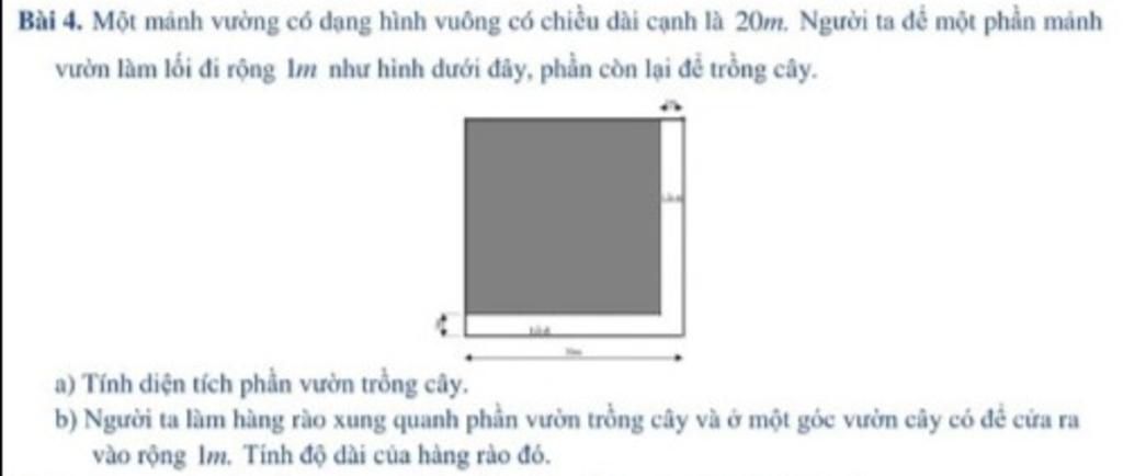 a ) Phần trồng cây hình vuông là :