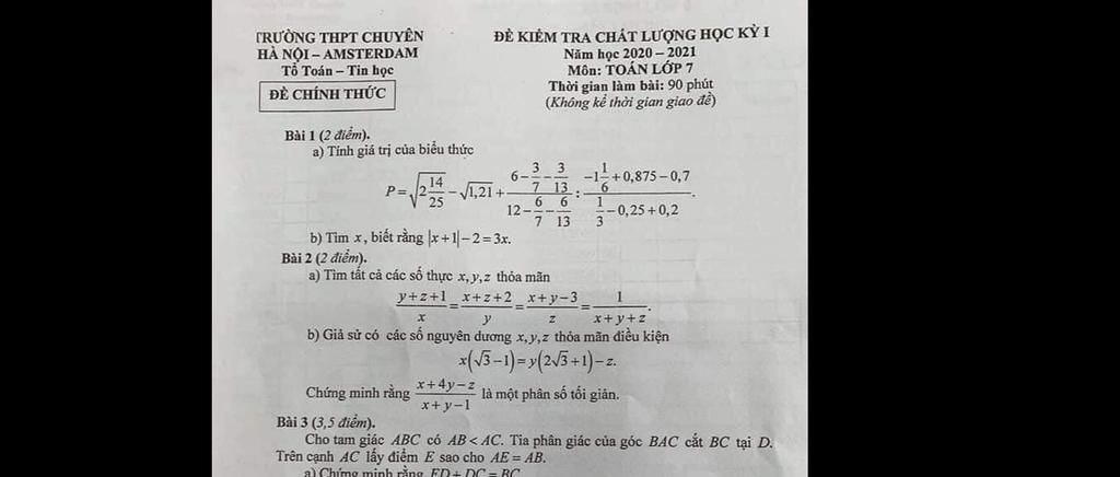 ĐỀ KIỂM TRA CHÁT LƯỢNG HỌC KỶ I