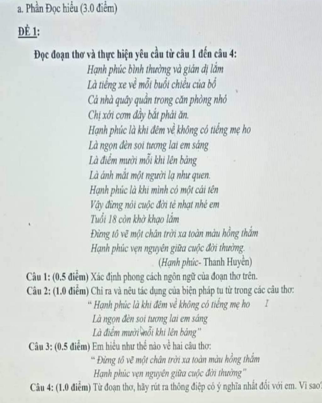 Đọc đoạn thơ và thực hiện yêu cầu từ câu 1 đến câu 4: