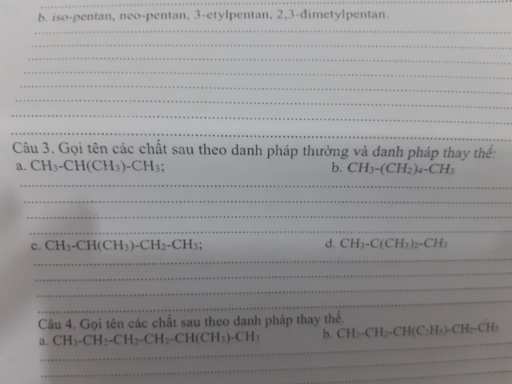 c)Tên thường: isopentan Tên thay thế: 2-metylbutan
