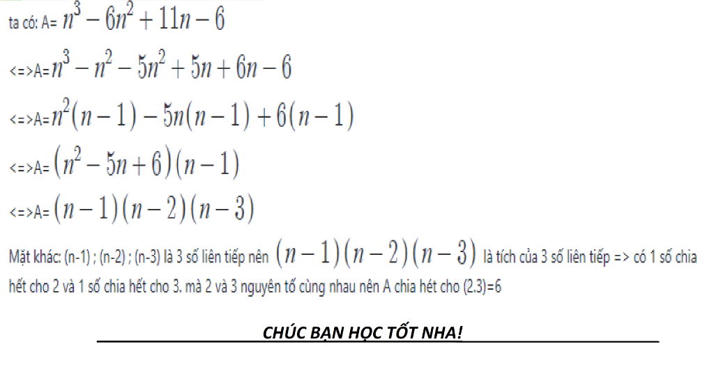 Vậy nên đó là tích ba số liên tiếp nên sẽ tồn tại 1 số chia hết cho 3 và một số chia hết cho 2