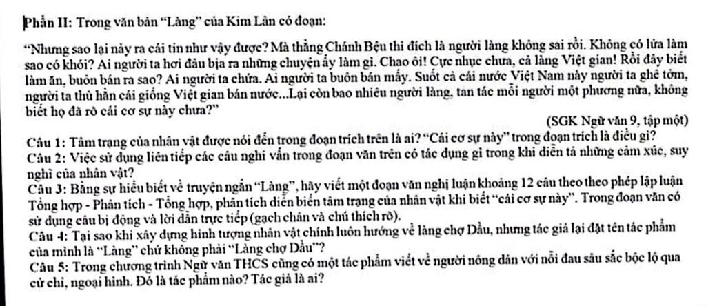 Phần II: Trong văn bản “Làng" của Kim Lân có đoạn: