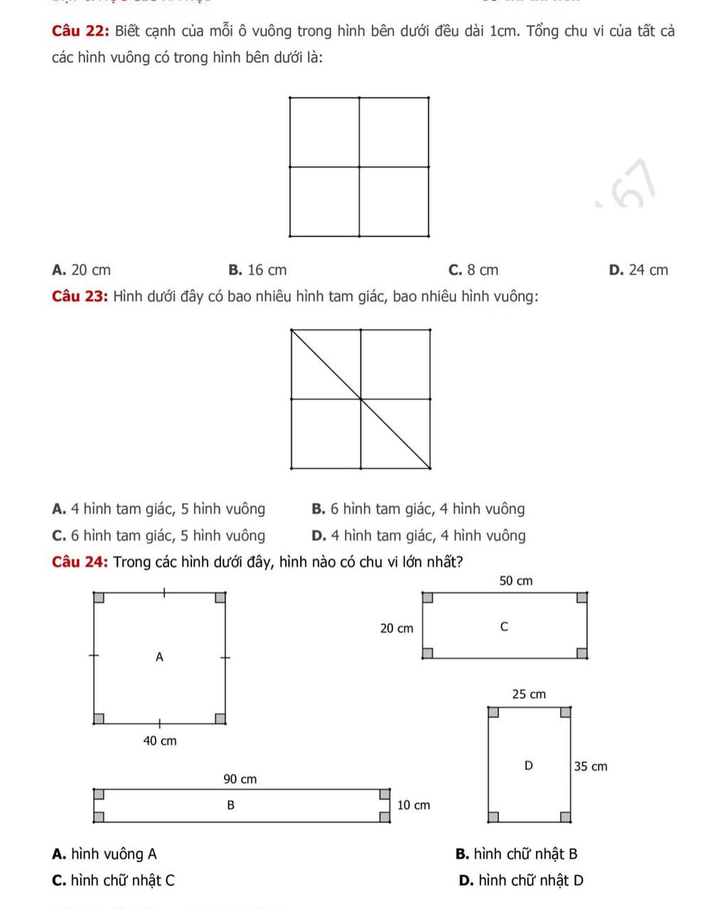 Câu 22 : 1×16=16(cm)⇒Chọn B