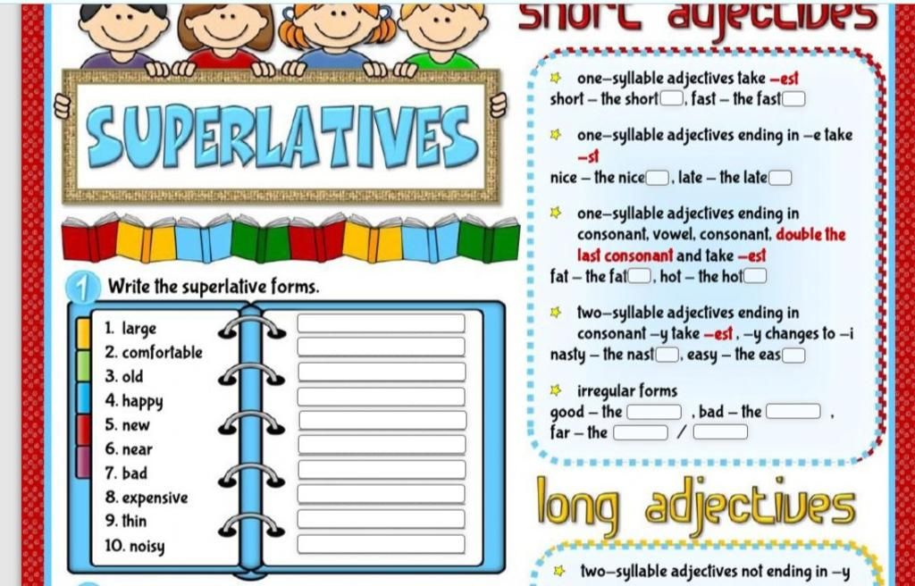 10, noisiest -> kết thúc bằng -y thì thêm -iest