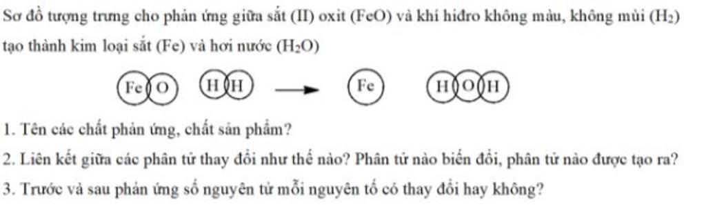 `***` Trước phản ứng: có `1` nguyên tử `Fe, 1` nguyên tử `O` và `2` nguyên tử `H`