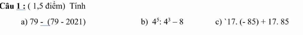 $ a) 79 - ( 79 - 2021 ) = 79 - 79 + 2021 = 0 + 2021 = 2021 $