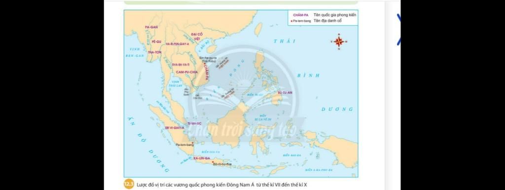 (23 Lược đó vị trí các vương quốc phong kiến Đông Nam A từ thể kỉ VII đến thế ki X