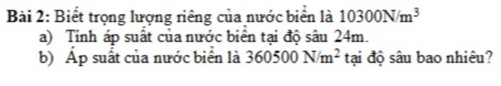 Áp suất của nước biển tại độ sâu 24m là: