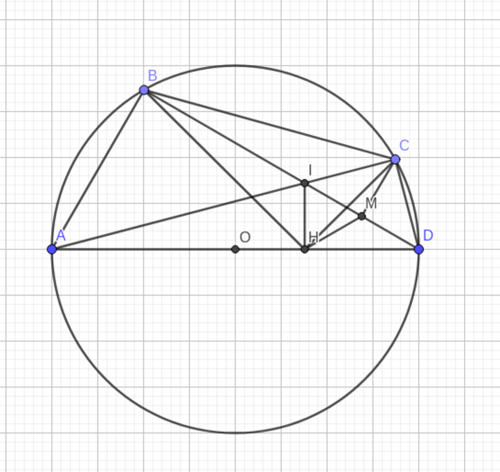c.Vì $IC\perp CD, IH\perp HD\to I,H,D,C$ nội tiếp đường tròn đường kính ID