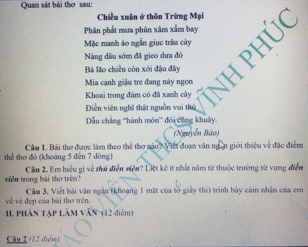 - Trường từ vựng "điền viên": cây cối, hoa cỏ, ao cá, ruộng vườn, nhà cửa