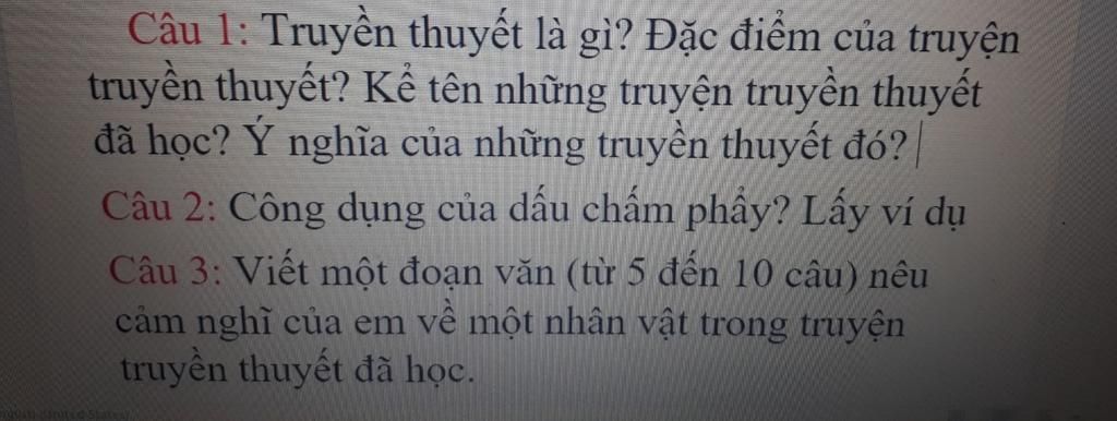 1. Truyện truyền thuyết là loại truyện dân gian. Đặc điểm của truyện truyền thuyết là có yếu tố hoang đường, kì ảo, kể về các sự kiện và nhân vật liên quan đến lịch sử hoặc giải thích nguồn gốc phong tục, cảnh vật địa phương theo quan niệm của nhân dân. Kể tên các truyện truyền thuyết đã học: Thánh Gióng, sự tích Hồ Gươm. Ý nghĩa của những truyền thuyết đó: giải thích nguồn gốc phong tục, cảnh vật địa phương theo quan niệm của nhân dân.