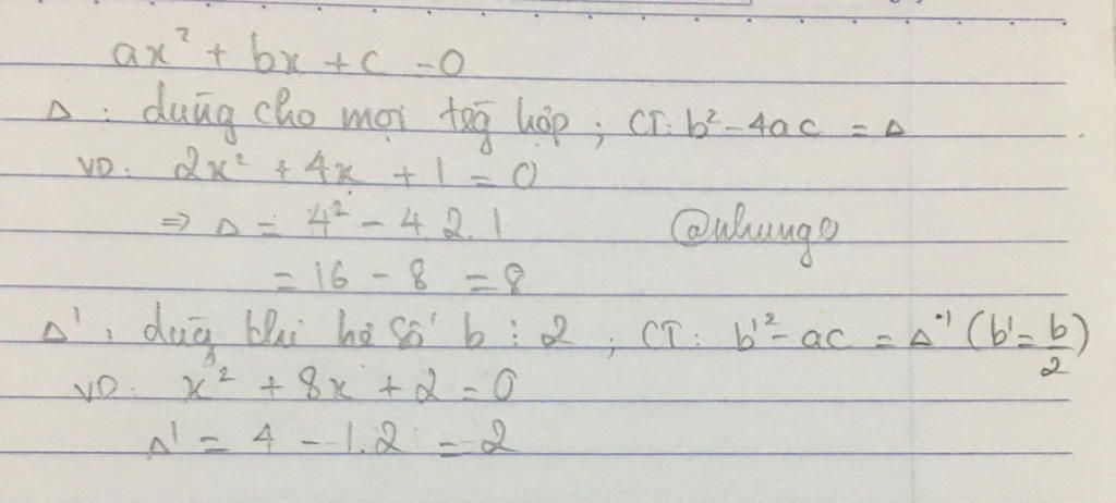 Vd : 2x^2 + 3x + 1 => đenta = (3)^2 - 4.2.1 = 9 - 8 = 1