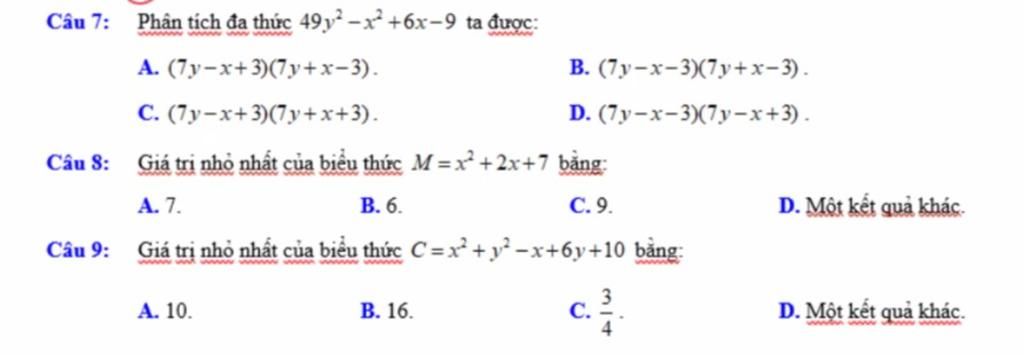 Vậy `C_(min) = 3/4 ↔ x =1/2; y = -3`