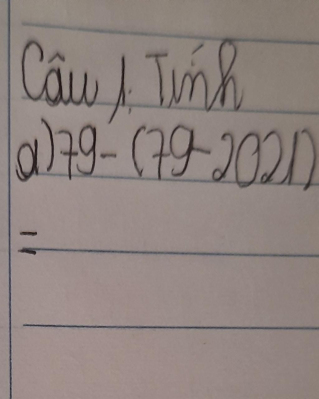 phá ngoặc ra thì bằng 79-(79-2021) = 79+ (-79) +(-2021) `=>` Sao bạn có thỏe ra cái này hay vậy Hơi bất ngờ đêý :)