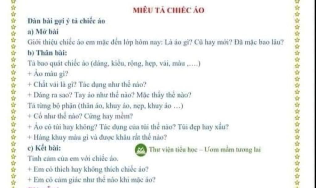 nó rất ấm.nó có màu xanh.có mũ đội gắn liền với nó.nó có 2 túi đằng trước.huy gài ở chiếc túi có màu vàng óng ánh.huy đóng áo ở giữa.ở trong có bông trắng ấm áp vô cùng.mặc vào cảm giác cứ như mình đang đắp chăn,đang ở một thế giới ấm.ai cũng khen cái áo này đẹp và cảm giác họ nghĩ ấm thật.em cũng vậy.em rất tự hào về nó.