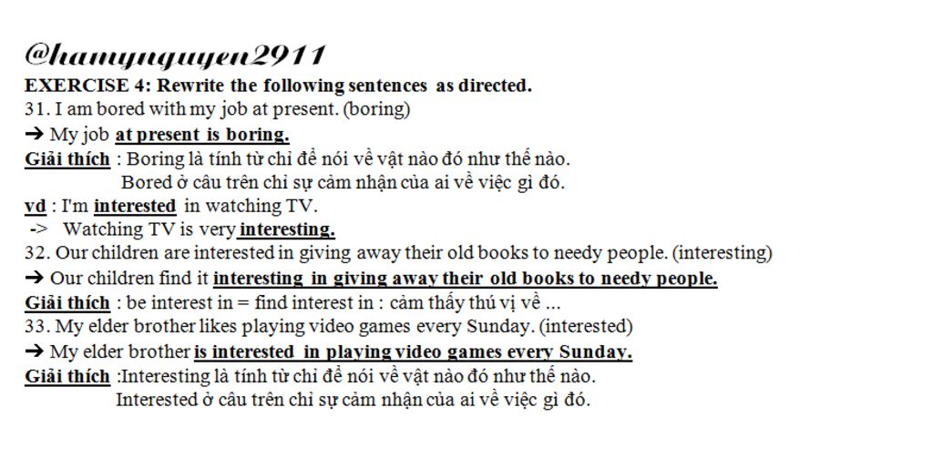 - Be interested in + V-ing: Thích làm gì