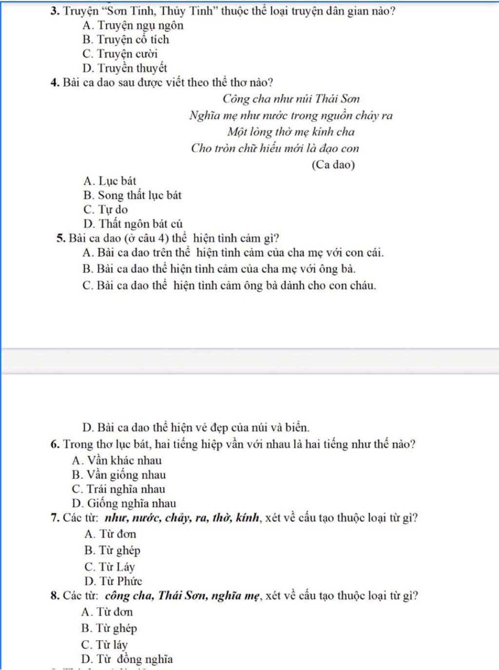 Câu 4: A Bài thơ viết theo thể thơ lục bát