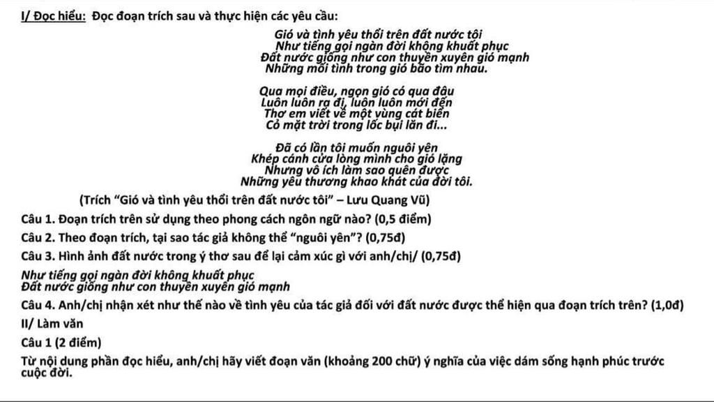 Câu1: thể thơ tự do câu 2; từ láy: ào ạt, xào xạc giải nghĩa: làm gợi hình gợi cảm nổi bật lên bức tranh thiên nhiên sinh động mà gần gũi câu 3: BPTT: điệp ngữ => nhấn mạnh làm cho câu thơ trở nên có hồn thêm sinh động và gần gũi câu 4:đồng ý vì cảnh đẹp non sông đất nước trải dài trên đất nước việt Nam đẹp biết bao nhiêu