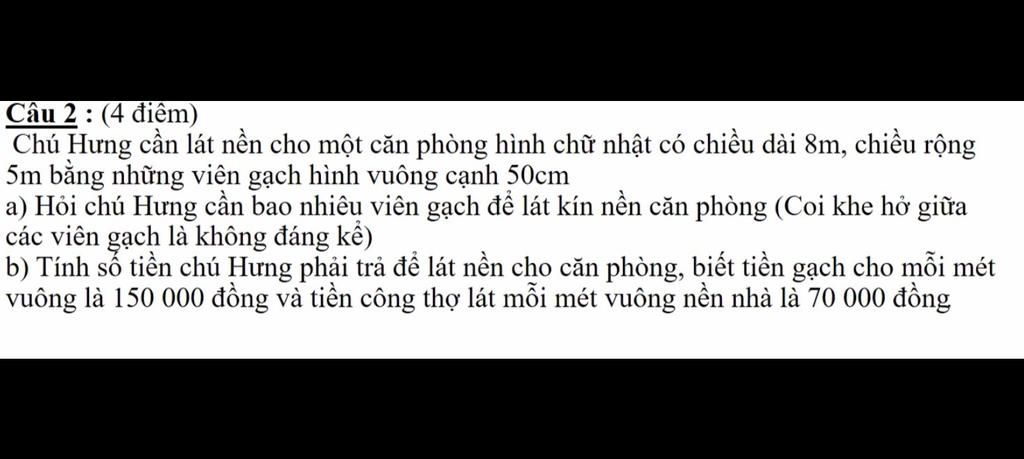 Số viên gạch chú Hưng cần để lót căn phòng đó là: