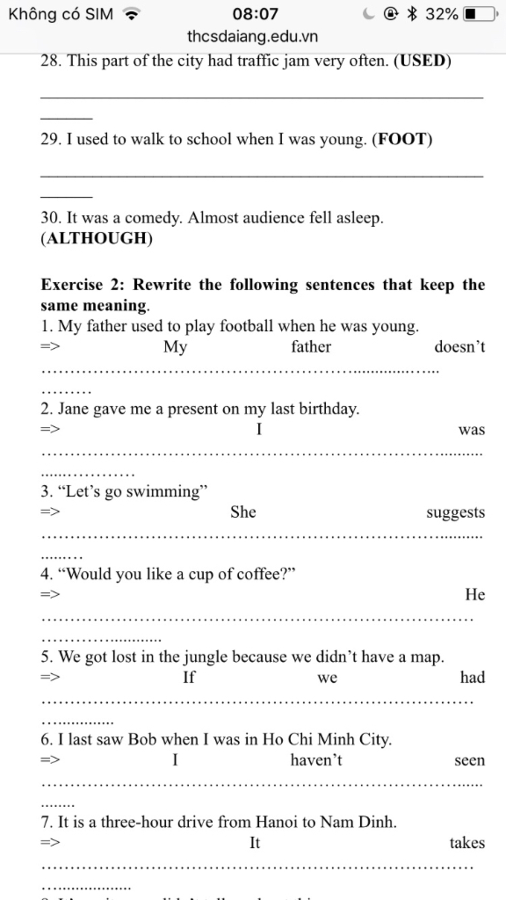 7.It takes me 3 hours to drive from Ha Noi to Nam Dinh