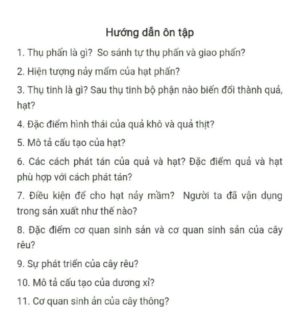1.Thụ phấn là hiện tượng hạt phấn tiếp xúc với đầu nhụy