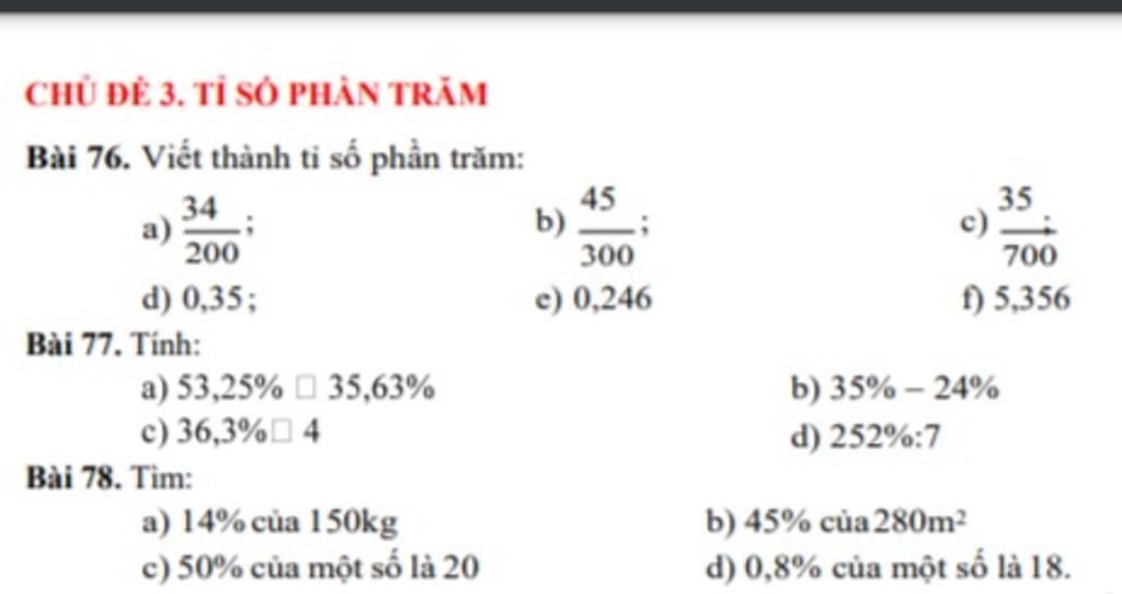 Bài 77 : a.53,25%-35,63%=17,62%.