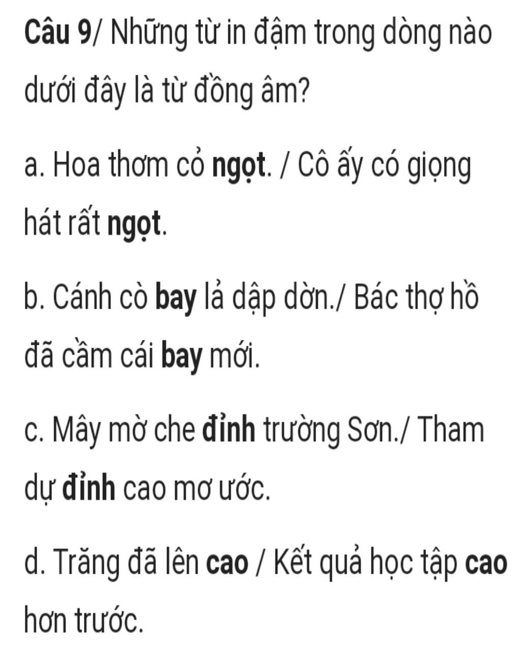 * Những từ in đậm trong dòng nào dưới đây là từ đồng âm `?`